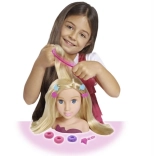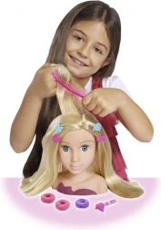 Ez a játék fejleszti a kreativitást és a motoros készségeket a gyermekeknél. A mellékelt rózsaszín fésű és színes csatok, valamint hajgumik lehetőséget adnak egyedi frizurák készítésére.