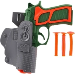 Szórakoztató gyerek pisztoly tapadókorongos nyilakkal és tokkal, amely biztonságos akciójátékot kínál otthon és a szabadban. A csomagban 3 db nyíl található tapadókoronggal, a termék könnyű, műanyag kivitelű, mérete 19 × 13 cm, 3 éves kortól ajánlott.