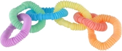 Ez a színes, 6 darab műanyag csőből álló készlet végtelen játékélményt kínál – az egyszerű nyújtástól és összenyomástól kezdve az egyedi alkotások készítéséig. Rugalmas, harmonikaszerű kialakításuknak köszönhetően a csövek mozgás közben vidám hangokat adnak, amelyek támogatják az érzékszervi ingereket és a koncentrációt.
