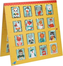A játékelemek tervezésekor a fenntarthatóság volt a fókuszban: FSC papír, növényi alapú festékekkel nyomtatva és műanyagmentes kivitelben. A kétoldalas tábla forgatható ablakokkal két játékváltozatot és még több szórakozást kínál. Csak válasszatok egy titkos állatbarátot, és tegyetek okos kérdéseket – aki előbb kitalálja, nyer!