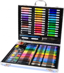 A készlet akár 150 elemet tartalmaz, amelyek kielégítik minden kis művész igényeit. Belül különböző színű ceruzák találhatók rajzoláshoz és vázlatkészítéshez, pasztellkréták a lágy, finom színátmenetekhez, valamint különféle árnyalatú festékek az expresszív festményekhez. A csomag része továbbá ecsetek, hogy a gyermek különféle festészeti technikákkal kísérletezhessen, és grafitceruzák, amelyek minden művész alapvető eszközei.