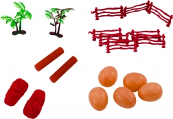 Fácskák, kerítések és egyéb műanyag elemek segítenek megalkotni a saját őskori világot, és fejlesztik a szerepjátékot.