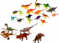 Színes műanyag dinoszaurusz figurák kiegészítőkkel, amelyek támogatják a fantáziát és a tanulást játékos formában.