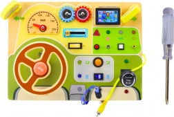 Az autó műszerfala által inspirált fa szenzoros panel ötvözi a hagyományos anyagot a modern interaktivitással. A gyerekek élvezhetik a színesen világító LED diódákat, a gombokat, kapcsolókat, forgó kerekeket és csúszkákat, amelyek a valódi autóelemeket idézik. A minőségi fa kellemes tapintású, tartós és környezetbarát.