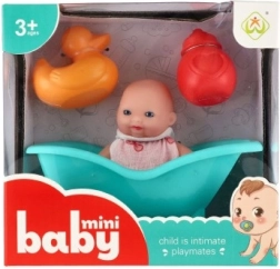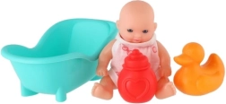 A készlet tartalmaz egy kis kádat, egy cumisüveget és egy kacsát a hiteles fürdőjelenetekhez és a kreatív játékhoz.