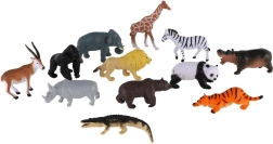 A készlet népszerű szafari állatokat tartalmaz – oroszlán, zebra, zsiráf, elefánt, orrszarvú, víziló, tigris, krokodil, panda és mások – a változatos játékokhoz és jelenetekhez.