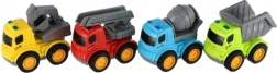 Ez az építőjármű-készlet elhozza a gyerekeknek az építkezés világát a szobába és a homokozóba is. Minden kisautó strapabíró műanyagból készül, lendkerekes meghajtással rendelkezik, és élénk színekkel, valamint funkcionális elemekkel csábít, mint a billenőplató, a keverődob vagy a kitolható kar.