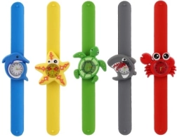 Vidám gyerekóra tengeri állatkák motívumaival, amely megkönnyíti az időtanulást és kényelmes viseletet biztosít. A önfelcsévélő (slap) szilikon szíjnak köszönhetően az óra egyetlen „csattanással” könnyedén felhelyezhető. A színesen megkülönböztetett mutatók segítik a gyerekeket az idő leolvasásában, a beépített LR626 elem pedig azonnali használatot tesz lehetővé. 5 vidám motívum érhető el – delfin, tengeri csillag, teknős, cápa és rák.