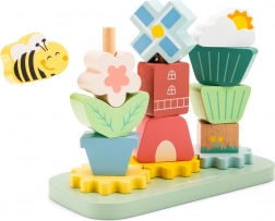 A színes fa darabokkal a gyerekek különféle kerti jeleneteket alkothatnak.