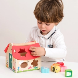 A házikó formáinak behelyezésével a gyerekek precíz mozgásképességet sajátítanak el, és javítják kézügyességüket.