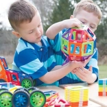 A mágneses építőkészlet GeoSmart Deluxe Kerekes készlet végtelen lehetőségeket kínál a kreatív építkezésre. A gyerekek különféle eredeti konstrukciókat, állatokat vagy járműveket alkothatnak. Az építőkészlet segít megérteni alapvető geometriai fogalmakat, színeket és formákat, így megadja a gyermekeknek a 2D és 3D alakzatok elsajátítását.