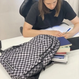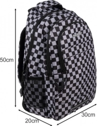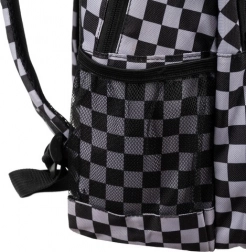 Stílusos és tartós, sakktáblamintás hátizsák a KRUZZEL márkától, tágas 30 l űrtartalommal, ergonomikus, párnázott vállpántokkal és okos rendszerezéssel iskolába, munkába és szabadidőre. Minőségi OXFORD 600D anyagból, béléssel, több cipzáras zsebbel, oldalsó hálós palacktartókkal és fényvisszaverő elemekkel a biztonságért. A csomag része egy összeillő húzózsinóros zsák is cipőnek vagy tornacuccnak.