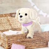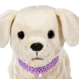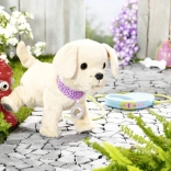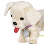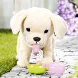 Amikor a tálkából iszik, a kutyus lehajtja a fejét, kinyújtja a nyelvét, és hallható a szürcsölés. Ivás után felemeli a lábát és kipisil – ez a valósághű funkció lenyűgözi a gyerekeket, és támogatja a fantáziájukat az állatgondozós szerepjátékban. A csont ropogó hangokat indít, a hát simogatása pedig farkcsóválást és vidám ugatást vált ki.