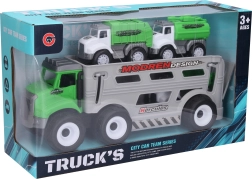 Ez a készlet a vontatóból és autókból biztosan elnyeri minden autós játékot szerető gyermek tetszését. A szabadon futó vontató könnyű kezelhetőséget és szórakozást biztosít. A lendkerekes autók további dinamikát adnak a játéknak, így a gyerekek örömmel élhetik át saját kalandjaikat az úton.