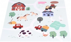 Az állatokkal, csűrrel és utakkal ábrázolt farm illusztrációi bevonják a gyerekeket a kreatív játékba. Az élénk színek és a részletgazdag motívumok fejlesztik a fantáziát és az érzékelést.