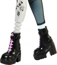 Ismerkedj meg a MONSTER HIGH ikonikus diákjával – Frankie Steinnel. Ez a baba a punk és techno stílus hatásos mixével tűnik ki: farmerdzseki, sort, látványos villám alakú fülbevalók és fekete bokacsizmák rózsaszín fűzővel. A pózok beállítását segítő ízületeknek köszönhetően könnyedén hozhatsz létre menő jeleneteket és történeteket.