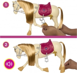 A ló hosszú, arany színű sörénye csatokkal díszíthető egyedi stílusokhoz és játékos frizurákhoz.
