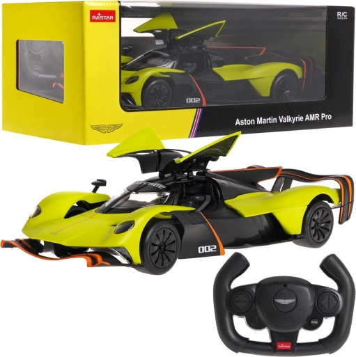 Éld át az otthoni versenypálya adrenalinját a Aston Martin Valkyrie AMR Pro licencelt modelljével 1:14 méretarányban a Rastar márkától. Ez a távirányítós szupersportautó minden irányú vezetést, nyitható ajtókat, LED világítást, független felfüggesztést és 2 menetfokozatot kínál. Precíz ABS műanyag kidolgozás, gumírozott kerekek és 2,4 GHz-es irányítás a sima és pontos kormányzásért.