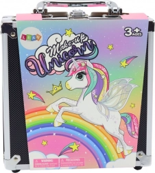 Elegáns, fekete kozmetikai készlet bőröndben, amely örömet szerez minden kis smink- és manikűrrajongónak. Tartalmaz színes szemhéjpúdereket (matt, szatén és brokátos), körömlakkokat, glittereket és praktikus kiegészítőket. A könnyű, könnyen hordozható bőrönd ideális utazáshoz és barátnős játékhoz. Remek ajándék 3+ éves gyermekeknek, fejleszti a kreativitást és a finommotorikát.