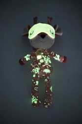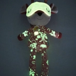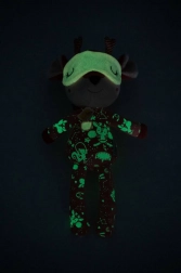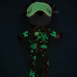A pizsamán és az alvómaszkon lévő fluoreszkáló nyomatok leoltott fény mellett gyengéden világítanak, biztonságérzetet adva az elalváshoz.