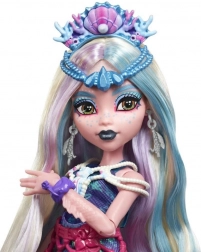 Készüljön fel a Monster Fesztiválra, az év legcsodálatosabb zenei eseményére, a Monster High Lagoona Blue babával. Ez a stílusos tengeri szörnyeteg korallzátonyok által inspirált öltözékében és csillogó szoknyájával készen áll belevetni magát a hangok óceánjába, és éjjelt nappallá téve szórakozni étkezésekkel, tánccal és rengeteg fotózással.