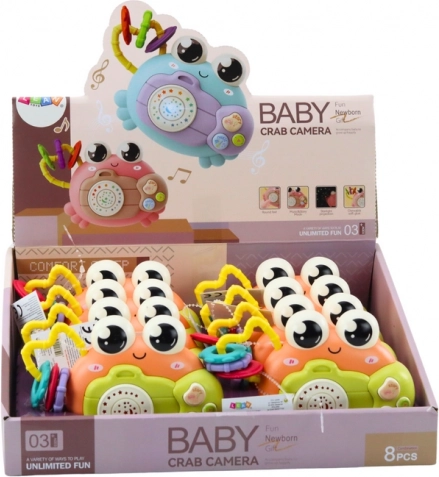 A bájos, narancssárga színű interaktív rák minden gyermeket felvidít. Csörgőt, finom hangeffekteket és beépített csillagos égbolt projektort kínál. Biztonságos, nem mérgező anyagokból készült, jól illeszkedik a kis kezekbe, és támogatja a finommotorika és az érzékelés fejlődését.