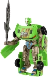 Ez a zöld, átalakuló modell két népszerű játékot egyesít – egy stílusos autót és egy bátor robotot. Egyszerű mozdulattal könnyedén átváltoztatható, támogatva a gyerekek fantáziáját, koordinációját és finommotorikáját.
