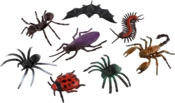 A készlet pókokat, százlábút, katicabogarat, skorpiót, hangyát, tücsköt, csótányt és denevért tartalmaz. A tasak megkönnyíti a tárolást és a szállítást.