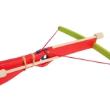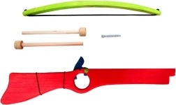 Ez a piros fa számszeríj biztonságos és szórakoztató játékra készült. A gumis felhúzásnak és a puha parafa lövedékeknek köszönhetően a gyerekek kockázat nélkül élhetik át a valósághű lövészélményt. A robusztus fa és fém elemekből álló konstrukció hosszú élettartamot garantál.