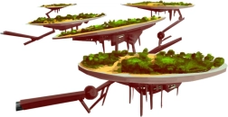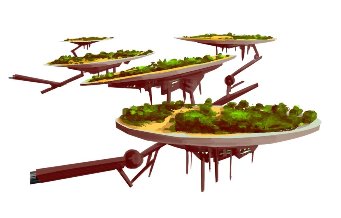 A játék környezete hangsúlyt fektet a természetre úszó zöld platformokkal, ami ökológiai és futurisztikus betekintést ad a játékhoz.