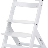 A biztonságos és komfortos használatot az ergonomikusan formált háttámla, a könnyen tisztítható, levehető tálca és a megbízható 3 pontos biztonsági öv teszi teljessé. A minőségi fa szerkezet modern, fehér megjelenéssel jól illeszkedik bármilyen enteriőrbe, és stabilitást nyújt a mindennapi használat során.