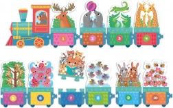 Indulás! Nemsokára elutazunk! Itt az idő az utolsó kocsikat is csatolni. Hány majmot viszünk ma? Velünk jön az elefánt is? Melyik vagonban van a legtöbb állat?