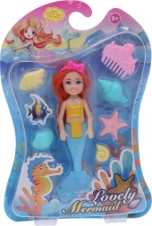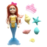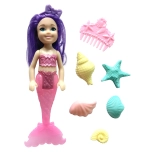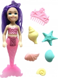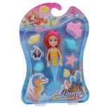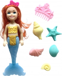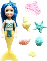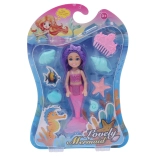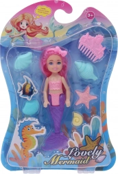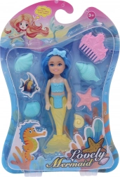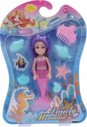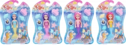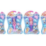 A bájos 15 cm-es sellő baba minden gyermeket megörvendeztet. A csomagban sellőt fésűvel és kagylóval talál, 4 színváltozatban – lila, rózsaszín, narancssárga és kék. Ideális kreatív játékhoz és a fantázia fejlesztéséhez.