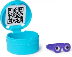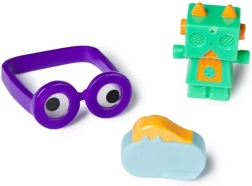 Színes műanyag játékokat tartalmaz, köztük gugliszemes szemüveget és robotfigurát.
