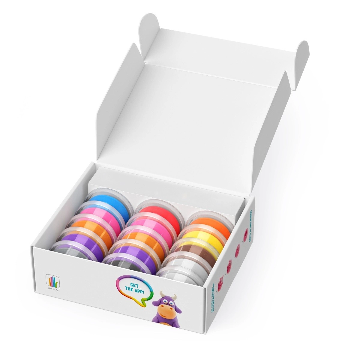 A szett 15 tégely puha gyurmát és digitális, lépésről lépésre vezetést tartalmaz Android és iOS alkalmazásban. Az anyag gyerekbőr számára biztonságos, és többször is használható – a fel nem használt gyurmát csak tedd vissza a légmentesen zárható tégelybe.