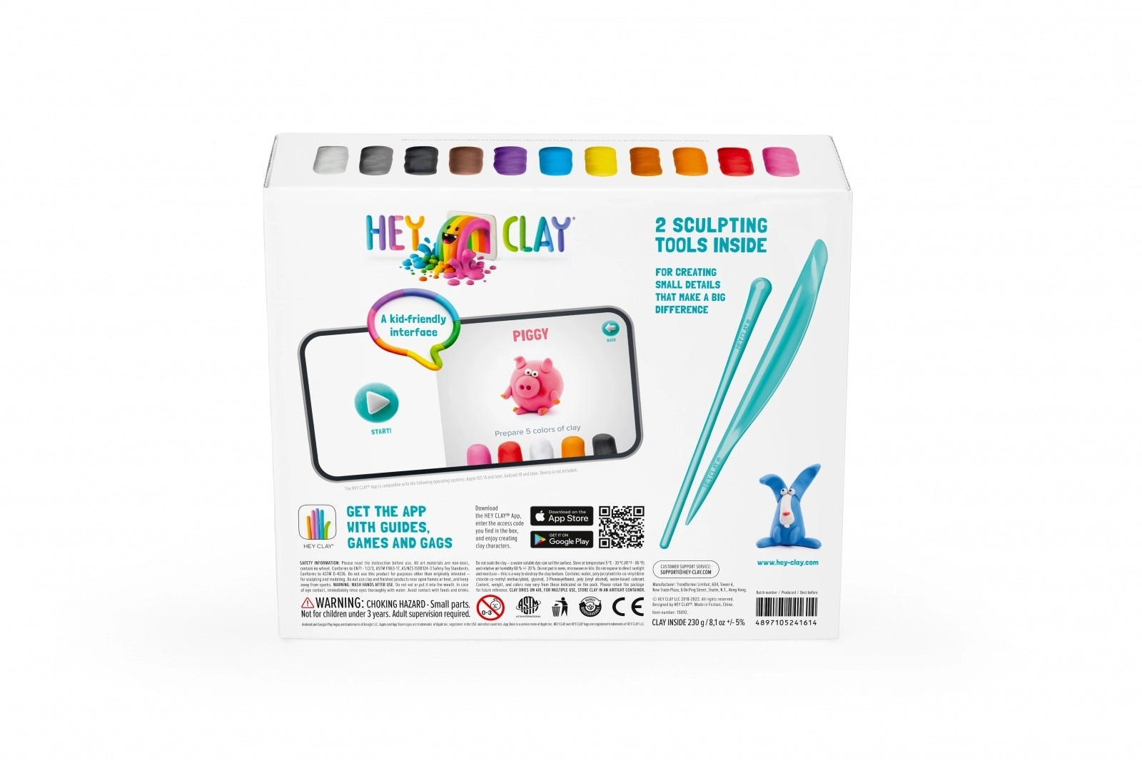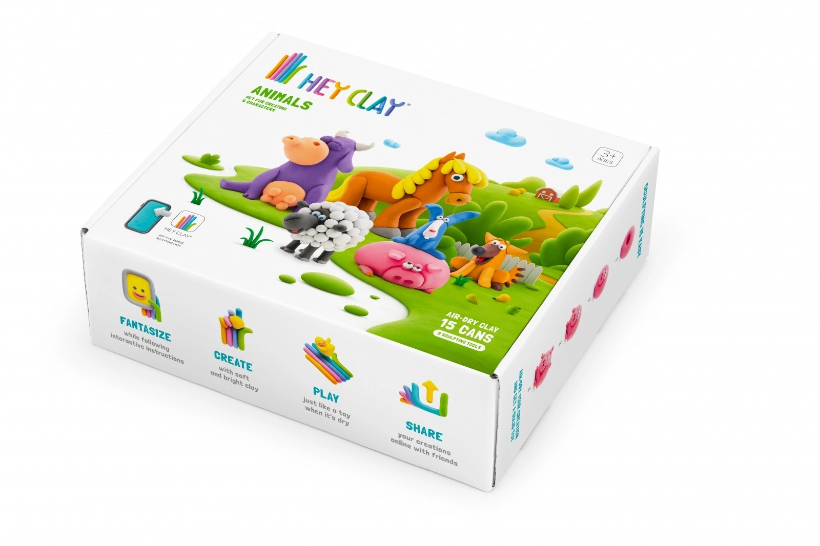 A HEY CLAY Állatkák egy kreatív készlet kis szobrászoknak. A könnyű habgyurma nem ragad, nem koszol, és az elkészült alkotás levegőn megkeményedik, így a gyerekek megtarthatják figuráikat. A gazdag színpalettának és az ingyenes alkalmazásban található lépésről lépésre útmutatóknak köszönhetően könnyedén elkészíthető akár 6 bájos állatka.