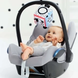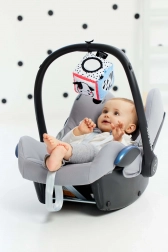 A kiálló elemek, mint a tehénfülek és a tigrisfarkinca, megkönnyítik a megfogást és fejlesztik a szorítást. A praktikus zsebecske plüss labdával zsinóron támogatja a betevést és kivételt, ami kiváló a kéz–szem koordinációhoz. Az integrált biztonságos baba tükör magára vonja a figyelmet és segíti a saját tükörkép felismerését, míg a másik oldalon lévő címkék/szalagok stimulálják a tapintást és az ujjacskákat.