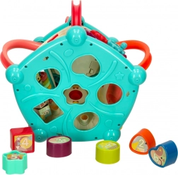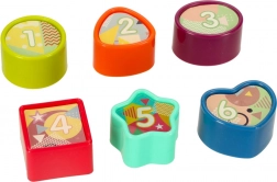 Hat színes kocka és a hozzájuk tartozó nyílások segítik a gyerekeket a formák, színek és számok felismerésében. Támogatja a logikus gondolkodást és a térbeli tájékozódást.
