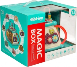 A masszív ABS és PP műanyag kivitelnek köszönhetően a kocka biztonságos és tartós. A szórakoztató elemek, mint a fogaskerekek, a zongora, a kormány, a tolható gyöngyök és a forgó állatos blokkok lekötik a figyelmet és fejlesztik a mozgáskoordinációt. A csomag része a formaillesztő hat darab kockával, valamint az eredeti „etess meg a madarat” játék hernyókkal és bagollyal a pontosság gyakorlásához.