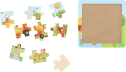 Az aratás motívuma természetes módon kelti fel a kíváncsiságot és bővíti a szókincset. A kirakó alkalmas rövid játékpercekre és elmélyült tevékenységre egyaránt. A természetes anyag kellemes tapintású és ellenálló a mindennapos használathoz.