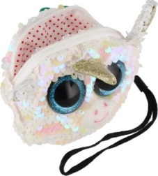 Ez az aranyos és színben vonzó pénztárca minden kis hölgynek megfelel, aki biztonságban szeretné tartani aprópénzét és egyben stílusos is szeretne lenni. Puha textilből készült és flitterekkel díszített, amelyek mozgásra színt változtatnak.