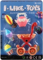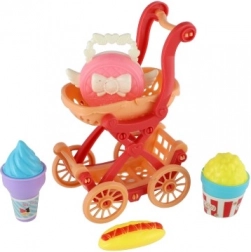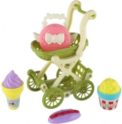 A készlet tartalmaz babakocsit és más kiegészítőket, amelyek mindennapi tárgyakat utánoznak. Mindez segít a gyerekeknek fontos szociális készségek megszerzésében és támogatja a kreatív játékot.