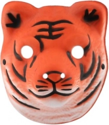 Narancssárga tigris maszk, feltűnő fekete csíkokkal, ideális minden kis állatrajongó számára.