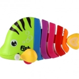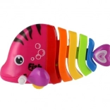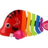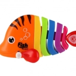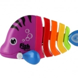 Ez a színes halacska nem csak gyönyörű színeket kínál, hanem egyszerűséget és biztonságot is a három év feletti gyermekek számára. Minden kulcsfordítás új játék lehetőségeket nyújt, és fejleszti a gyermek finom motorikáját.