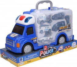 Ez a nagy rendőrautó 34 cm hosszú, 12,5 cm széles és 18,5 cm magas. Szabadon mozgatható kerekekkel van felszerelve, amelyek megkönnyítik a mozgást a felületen. A piros gomb megnyomásával fény- és hangeffektek aktiválódnak, amelyek valósághű játékélményt nyújtanak.