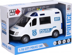 Rendőrautó fény- és hanghatásokkal, ideális játék a kis rendfenntartók számára. A lendkeréknek köszönhetően a menet sima és szórakoztató.
