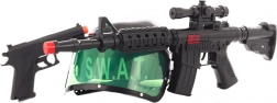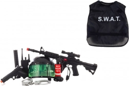 A rendőrségi készlet tartalma: sisak, mellény, géppisztoly, rádió, pisztoly, gumibot, bilincs, fejhallgató és gránát. Anyaga: műanyag. Átlátszó műanyag csomagolásban. A csomag mérete kb. 52×34×12 cm. A mellény mérete 34×37 cm. Ajánlott életkor: 3+.