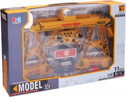 Ez a valósághű portáldaru izgalmas építési élményt nyújt a gyerekeknek. A távirányító lehetővé teszi a előre és hátra haladást, a helyben fordulást, valamint a precíz emelést és lehelyezést. A készletben található konténer, ömlesztett áru tartály, hordók, rönkök és bóják az élethű építkezési jelenetekhez.