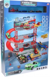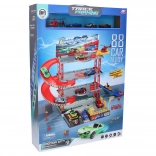 Szórakoztató parkolóállomás gyerekeknek, amely akciódús játékot kínál 3 darab fém autóval és egy fém helikopterrel. Találsz rajta heliportot, benzinkutat és sorompót a valósághű jelenetekhez és a kreativitás fejlesztéséhez. Az autók mérete 7 cm, a állomás méretei 59 × 27 × 39 cm, ami bőséges helyet biztosít a játékhoz.