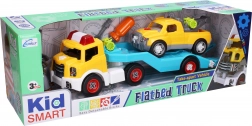 Szórakoztató építőkészlet kis szerelőknek: 37 cm hosszú csavarozható vontató és csavarozható autó csörlővel, kiegészítve csavarhúzóval és közlekedési táblákkal. Játék közben fejleszti a finommotorikát, a logikát és a képzeletet a vontatás és javítás témájában.